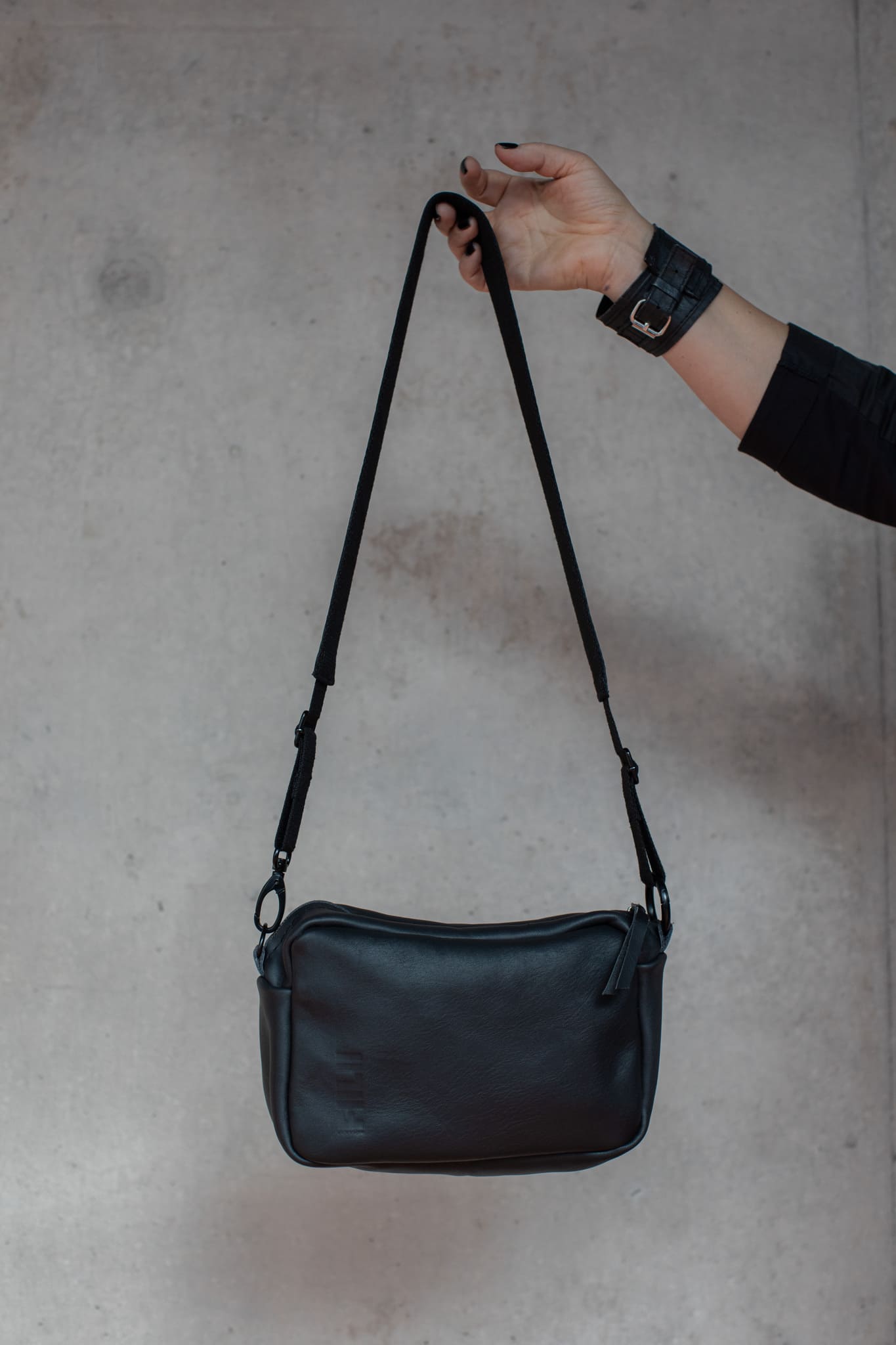 Šī ir klasiskā Fiilii ādas soma, kuras tīrā forma un drosmīgā melnā āda padara to par ideālu sabiedroto gan pilsētas dienām, gan vakariem ārpus rutīnas. Regulējama siksna ļauj to nēsāt pāri plecam vai ķermenim, saglabājot kustības brīvību un stilu.